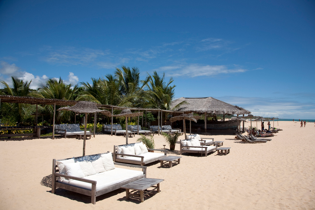 The entire hotel was built in collaboration with local artists. Sinks and baths were sculpted from fallen tree trunks. Light fixtures were created by people from the local Pataxo tribe using decorative beads and seeds. Kitchen utensils were carved from coconut shells. And even the beach lounge was built from old fishing boats. A caipirinha, please?