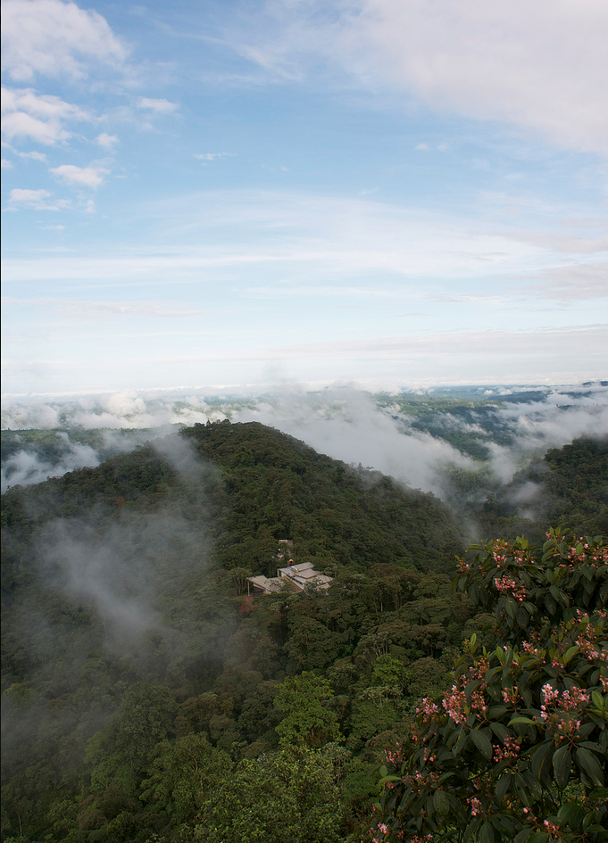 The floor-to-ceiling windows of the Mashpi Lodge look out over the bright green rainforest from a high plateau. You’re more than 3,000 feet above sea level. When the thick clouds begin to dissipate, you can see giant ferns, moss-covered tree trunks, and delicate orchids. Open your window to hear birds chirping and frogs croaking. Sip fresh fruit juice on the terrace. A light mist settles on your arm, but it’s not raining. At least not yet. Sit in the jacuzzi with the wooden wall panels open to the breeze. And immerse yourself in books or a biologist’s talk in the reading area.