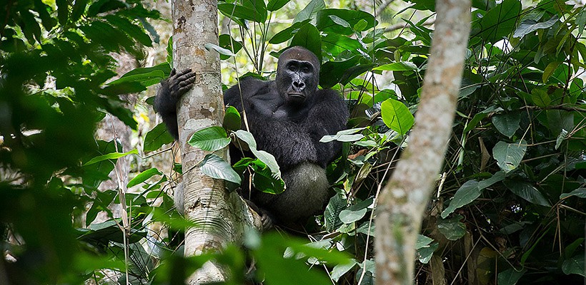 From Lango Camp, it’s a four-hour drive through the forest to Ngaga Camp, the second half of your journey. It’s here, in the Ndzehi Forest, that scientists track two groups of western lowland gorillas. After a gorilla briefing, you head onto a trail to become familiar with the forest. Much of the year, the gorillas eat starchy plants, but right now, during the dry season, they prefer ripening fruit. You spot crested mona monkeys and moustached guenons during your hike. Central chimpanzees swing through the trees ahead of you. Usually, this would be the highlight of your day—or trip—but you’re focused on the gorillas.