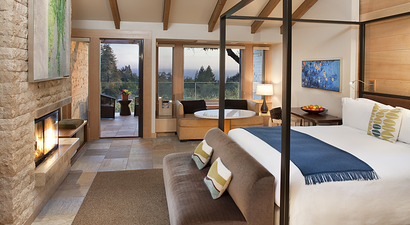 The Ventana Inn & Spa is one of the few places to stay in Big Sur. The weathered cedar buildings sit on more than 240 acres of land filled with California redwoods and sycamores. A Red-tailed Hawk watches the entrance upon your arrival. Hammocks and hand-carved benches are strategically placed in quiet areas. The pools are heated to 80 degrees year round, though you can sit in a Japanese hot bath if that’s too cool for you. Your rustic room has a fireplace, deep leather chairs, and a deck to watch migrating whales. When you sit outside, the smell of rosemary mixes with the salty air. You feel comfortable already.