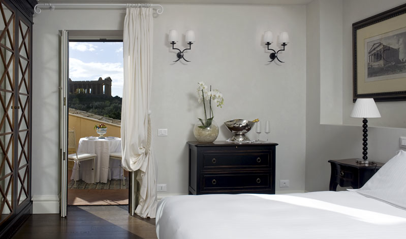 You’re at the Hotel Villa Athena, a restored 18th-century residence, outside of Agrigento on Sicily’s southern coast. The Temple of Concordia is right in front of you. Okay, maybe not right in front of you. It’s about 200 yards away, and you have an incredible view of the well-preserved Doric masterpiece.