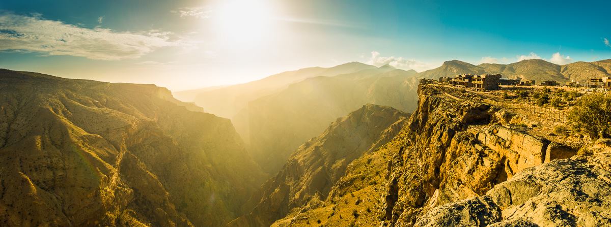 Jabal Akhdar: Drive through the desert, up into the green mountains, and along terraced hillsides to find a cliffside hotel in Oman.