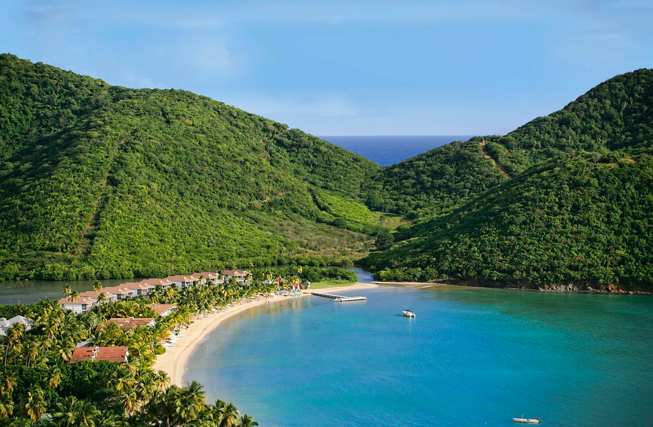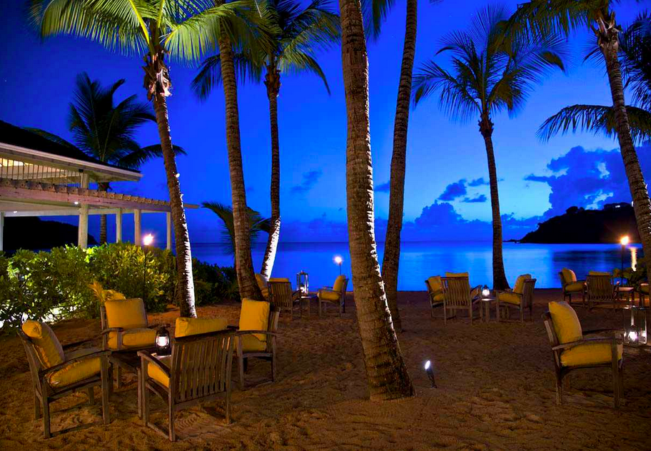 The resort is stunning. Hammocks hang between palm trees. Wooden tables and chairs sit in the sand. Sun loungers are strategically placed around partly shaded areas. Low gray-and-white buildings with plantation-style shutters hug a white-sand beach. Fuchsia bougainvillea tumbles off their balconies. While everything faces the calm Caribbean Sea, of course.