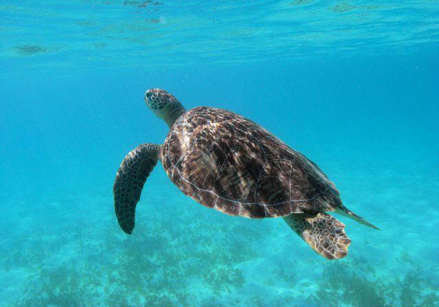 From Palm Island, it’s a 45-minute boat ride to the marine park, where you find a calm, sandy-bottomed lagoon. The water looks blue-green from a distance, but perfectly clear once you’re above it. Colorful coral and schools of fish are just beneath surface. Forested islands are ringed by white-sand beaches. While a cool breeze blows in from the Atlantic.