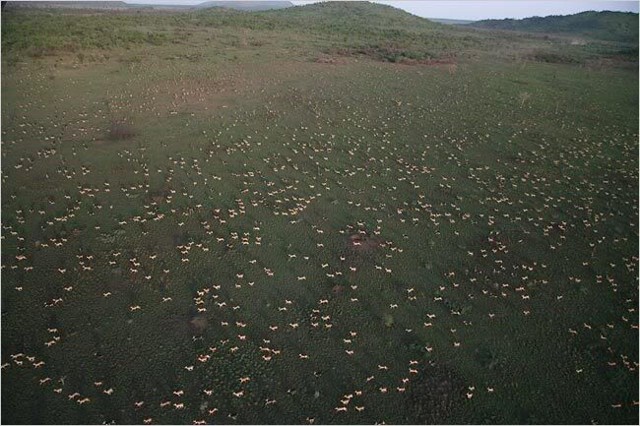 Boma National Park, in the Greater Upper Nile region, sits along the Ethiopian border. The 8,800-square-mile park was established in 1986. Twice a year, from March to June and November to January, it becomes one of the longest highways in the world, as animals move from north to south and west to east in search of water and food. It rivals the Serengeti in terms of the sheer number of animals crossing between neighboring national parks. And, until recently, it was impossible to see it.