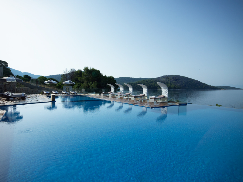 Usually, you would drop your bags, go back to the car, and start exploring the gorgeous coastline. But not today. After seeing the resort, your plans changed quickly. You’ll be quite content doing, well, nothing for the rest of the afternoon. Open the sliding glass doors in your all-white room to take in the view from your balcony. Watch sailboats glide through the bay on the pebble beach, where sun loungers and umbrellas stand at attention. The water is calm and warm.