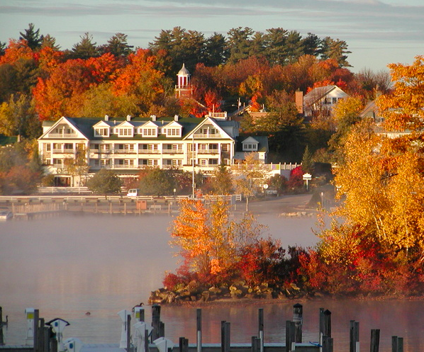 An adorable town called Meredith lies on the lake’s northwestern shore. It was first settled by people moving inland from Salem, Massachusetts in the mid-18th century. Since it’s only two hours from both Boston and Portland, Maine, it didn’t take long for the little town to become a summer resort. The center of Meredith is filled with red brick buildings, white-steepled churches, and small shops. The Winnipesaukee Scenic Railroad, whose rails once transported people to the lake from Boston, now runs between Meredith, Weirs Beach, and Paugus Bay. While Mill Falls at the Lake offers four lakefront inns from which to choose.