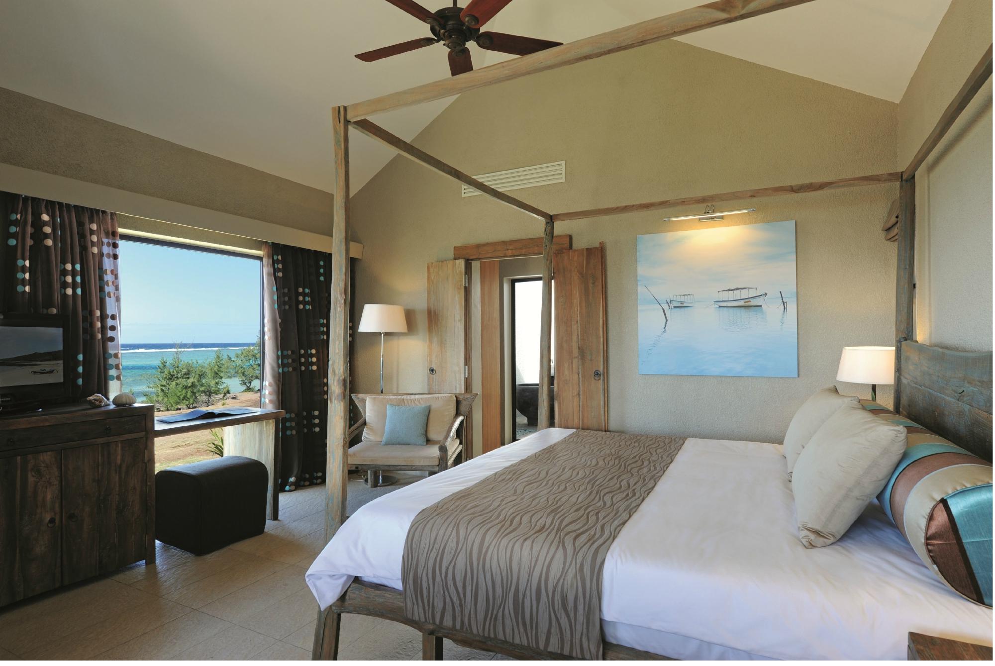 This perfect morning is courtesy of Le Tekoma. Yesterday, you landed at the little airport on Rodrigues’ western coast. You drove up the island’s central ridge and through deep valleys, passing large vegetable farms and lots of fruit trees, en route to Pointe Coton. There you found a little beachfront hotel. Leaf-shaped loungers and sun beds were filled with pillows that matched the color of the water. The color scheme flowed into your room, which was decorated with teak furniture and enlarged photographs of the coastline. The bathroom featured a walk-in closet, two natural stone sinks, and an outdoor bathtub. While the view of the gorgeous beach was never far from sight.