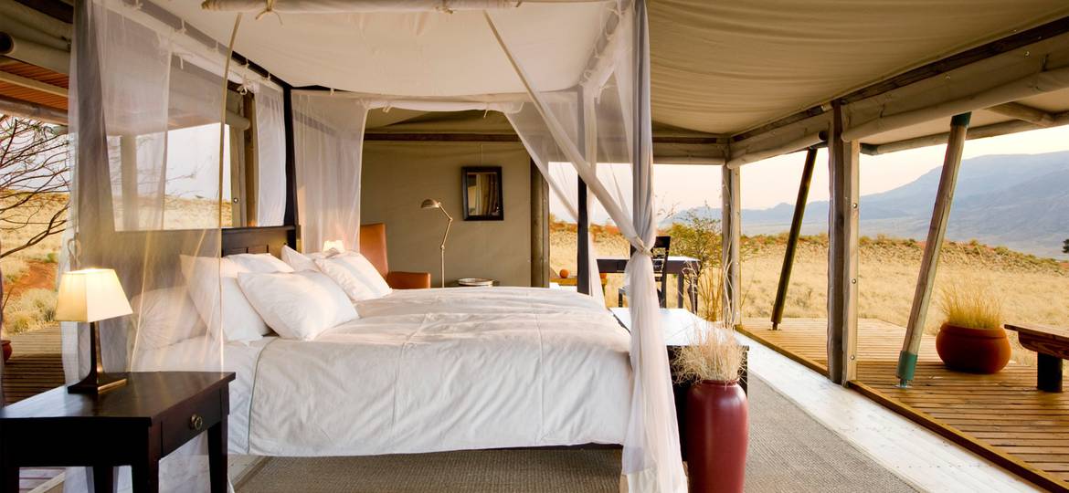 So now that you’re awake this morning, what’s your plan for the day? Follow the sandy path back to the main building for a breakfast of porridge, yogurt, and fruit salad. Head away from the lodge on a full-day excursion to see Big Daddy dune (the tallest dune in the area), 280-million-year-old tree trunks that have turned into stone, and a herd of springboks. Eat an al fresco picnic lunch at the “Hard Rock Café” near huge boulders. Go on a nature walk to watch more oryx frolicing in a waterhole. And look forward to returning to the lodge for another sundowner, gourmet dinner, and evening under the starry sky. Just don’t stay up too late tonight—your wake-up call is already set for the morning.
