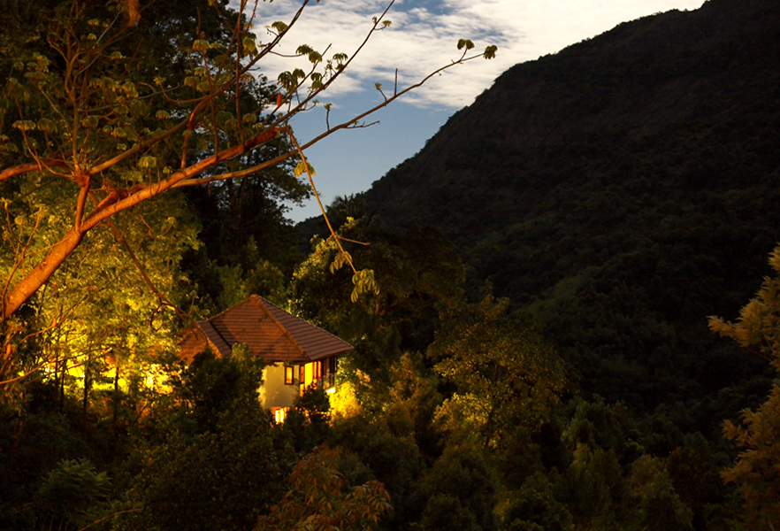 In your Kurumba Cottage, you finally find the silence you’ve been craving. Earth tones fill the pyramid-shaped room with a thatched roof. French doors lead to a large balcony lined with an ornamental, areca nut railing. There’s even a view of the hills from the bathroom. The pool and the restaurant, the treehouses and the perfectly placed hammocks are just as relaxing. You finally found peace in India.