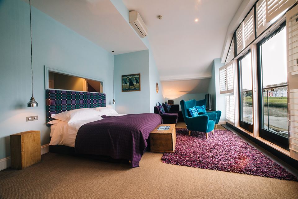 When you arrive at the hotel, you’re tempted to stop in the bar, which overlooks the harbor, for a pint of their own ale. But you’ll have plenty of time after you settle into your room. The Aeron Queen, in the warehouse next door, is more spacious than the rooms in the original building. You walk in to find huge windows with a panoramic view of the harbor, a super king bed, and a living area with colorful velvet furniture. But your favorite feature is the huge free-standing tub in the bathroom. Now you’re ready to relax for the weekend.