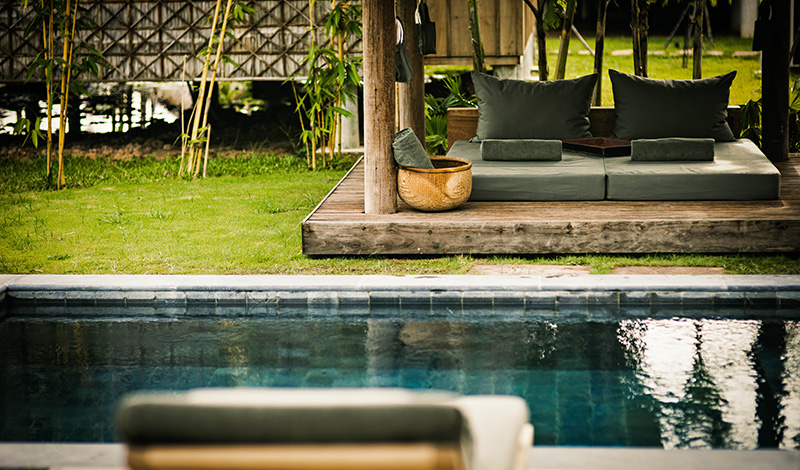But, unlike most of the day-trippers, you can return tomorrow and the next day, if you wish. Phum Baitang is just a few miles from both the World Heritage Site and the center of Siem Reap. It feels worlds away from everything, though. The “green village” looks like an authentic Cambodian village. Its buildings are made of local stone and wood. Rustic villas, built on stilts, are full of handmade wooden furniture, lanterns, and cool linens. They all have wide terraces. Some, like yours, have private plunge pools. Sun loungers, daybeds, and baskets of thick towels are outside, too. While rice paddy fields, lemongrass, and grazing water buffalo surround the property.