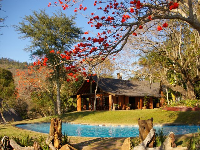 You’re in the Phophonyane Nature Reserve. It’s surrounded by the Gobolondlo and Makhonjwa Mountains. Views extend down the Ntfonjeni Valley. Piggs Peak, which was founded as a gold mining town, is nearby. So is Kruger National Park, one of Africa’s largest game reserves. But you’re not in South Africa. You’re in Swaziland.