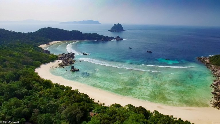 “Good morning, Myanmar,” you quietly say when you reach the Eagle Rock Viewpoint. The view is beyond breathtaking. Fishtail palms, fan palms, and screwpines tumble down the hill in front of you. The greenery abruptly ends at the powdery white sand. It, in turn, runs into the water, whose shade turns from clear to green to turquoise to blue in only a matter of yards. Large boulders look like they’re racing out to sea. Islands, some consisting of just rocks, are in the distance. While absolutely no one is in sight. So you say it again, but this time, you yell it at the top of your lungs. “Good morning, Myanmar!”