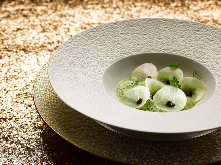 As for your first meal, it’s the autumn tasting menu at Park House. Instead of stopping at one of the pubs for a pre-dinner drink, you arrive at the Victorian townhouse early for a glass of wine in the Pinot Wine Bar. The first-floor space has a wooden bar, a fireplace, and plush blue couches. The award-winning wine list—even by the glass—is long and detailed. Much of it, surprisingly, comes from the New World. You look forward to those pairings with dinner, but opt for an Old World Champagne right now. Given the day’s bright sunshine and unseasonably warm weather, you select a shimmering pink rosé one.
