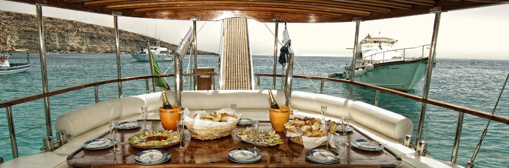 Eventually, the captain drops the anchor and yells “bagna.” It’s the signal that you’re free to jump into the warm water. A huge lunch spread—featuring tuna and mackerel, cassata and torta delizia, chilled wine and sweet passito—is on the table when you return. You spend the rest of the afternoon eating, drinking, and soaking up the warm sunshine. The best part is that you’ll do it all again tomorrow.