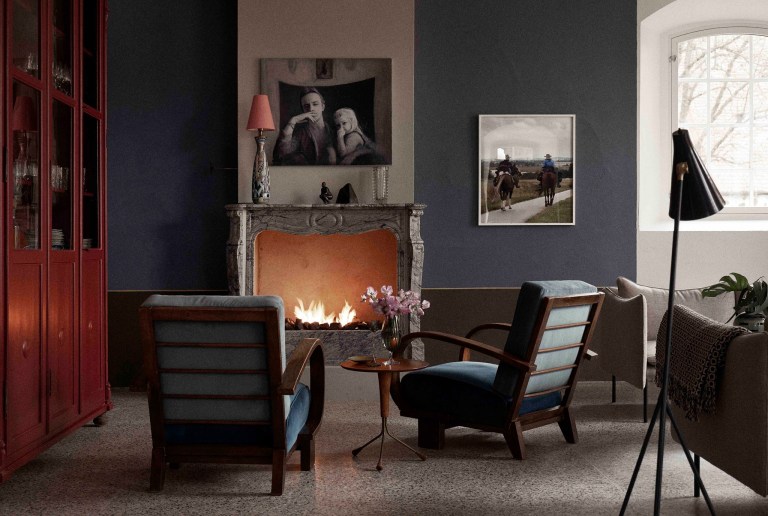 It’s evident as soon as you enter the hotel. Besides the old fireplace, there are terrazzo floors, custom-made furniture, and large photographs in the lounge. The mudroom is stocked with Stutterheim (a Swedish company) raincoats and Hunter boots for you to wear around the property. The 11 guest rooms are individually decorated. Each features white linens and a wool blanket draped over the corner of the bed. There’s an exposed closet, a leather luggage rack, and floor lamps. While red chairs and large paintings brighten the otherwise neutral room.