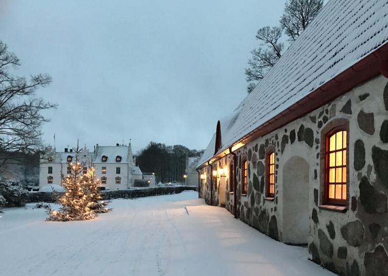 The estate’s 18th-century farmhouse is now Wanås Restaurant Hotel. The exterior—with its original stone walls—looks historic. The interior retains a few antique features. There’s a marble fireplace in the lounge, salvaged oak stairs leading to the second floor, and vintage tiles in the bathrooms. The rest of the space is completely modern, though.