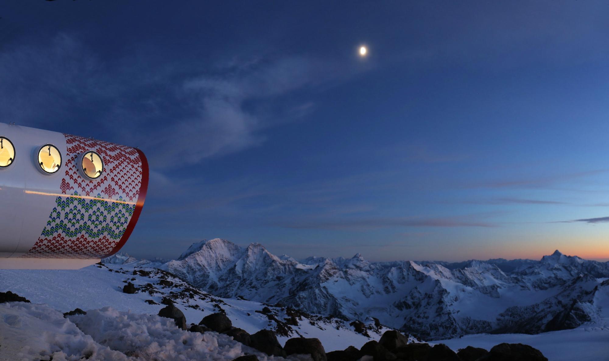 Mount Elbrus is a dormant volcano in the Caucasus Mountains of Southern Russia. It’s just miles from the Georgia border. The mountain has two summits. The eastern summit, which stands at 18,442 feet, was first ascended by an Imperial Russian Army scientific expedition in 1829. The taller western summit was reached 45 years later by a British expedition. Despite its height, Mount Elbrus is now considered one of the easiest high-peak climbs in Europe due to cable lifts and cabins that have been built on the mountain. LEAPrus 3912 Alpine Station is one of the newest cabins.