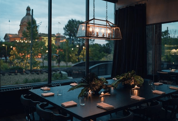 Though you might want lunch or snacks (housemade Guinness pretzels or poutine, anyone?), don’t overstuff yourself at the hotel. Your dinner reservation is at the Butternut Tree, a restaurant that overlooks Victoria Park and the Alberta Legislature Building along the river. Chef Scott Downey grew up in the Edmonton area, trained at some of the best restaurants in the world (hello, Daniel and Noma), and finally returned home last year. His long dining room—complete with thick wooden beams, shelves of micro-distilled spirits, and floor-to-ceiling windows—is gorgeous. His menus explore Canadian cuisine using regional and, sometimes, foraged ingredients. While his beverages are strictly Canadian.
