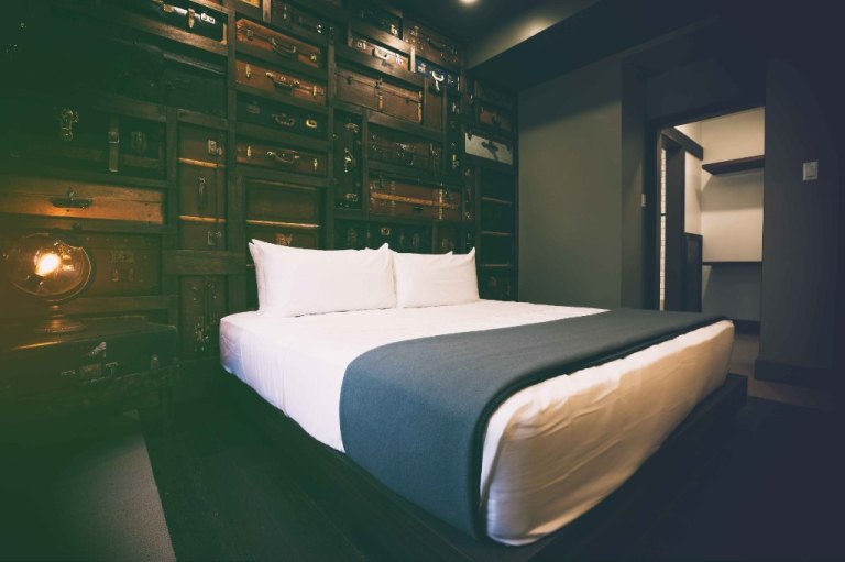 Crash Hotel is now a breath of fresh air in a city full of basic chain hotels. It’s a boutique hotel with individually decorated, high-tech rooms. Upgraded themed rooms include the King HiFi Room and the Traveler’s King Corner Room. The former features a wall of vintage speakers, an antique stereo console, and a phonograph player. The latter is decorated with vintage suitcases instead. Then, since the hotel is hoping to attract millennials, there are also shared rooms with bunk beds and communal bathrooms. Plus everyone has access to the workstations and the retro-chic cocktail bar in the lobby, the live music and the arcade games in Denizen Hall, and the local beer in Arena Liquor.