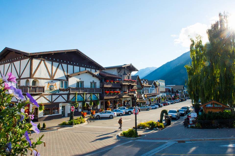 Leavenworth lies two hours east of the Emerald City. The North Cascades overlook the small town. They’re lined with aspens, cottonwoods, and ski slopes. The Wenatchee River, which eventually empties into the mighty Columbia River, meanders by waterfront parks. Canoers and kayakers paddle on the still-chilly waters. While the center of town looks like a traditional Bavarian village with alpine chalets, wooden balconies, colorful frescoes, and, this time of year, vibrant flowers.