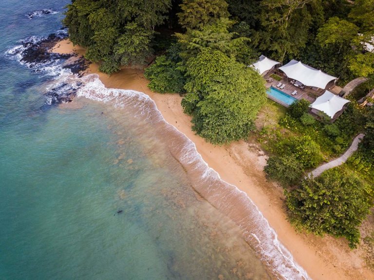 For the moment, the beach wins. Roça Sundy lies in between a dense tropical forest and the Gulf of Guinea’s warm water. It’s on Príncipe, the smaller of São Tomé and Príncipe’s two main islands. Both islands off the coast of Central Africa were uninhabited when the Portuguese arrived in the 15th century. They brought slaves to build grand sugar, coffee, and cocoa plantations. After Africa’s second-smallest country gained its independence in 1975, much of its land, particularly on Príncipe, was reclaimed by the rainforest. It’s now filled with jaw-dropping scenery and species not found anywhere else in the world.