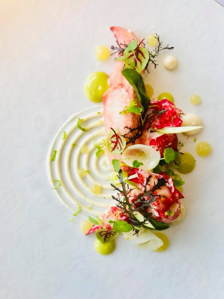 Like most restaurants of this caliber, dining here is an experience. The Bocuse d’Or tasting menu may only list four courses, but it’s accompanied by many tasty treats along the way. You start with a glass of sparkling Blanc de Blanc as an aperitif. It arrives with snacks. Herbed focaccia bread. Olive tapenade bruschetta. Salty bresaola. A poached quail egg. An amuse-bouche of bright peas, shellfish, and wasabi follows them. Then lobster and tomatoes are the stars of your starter.