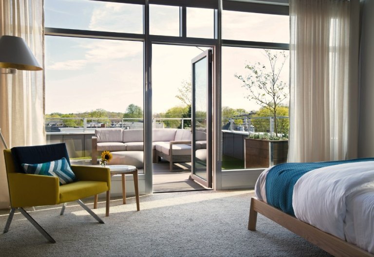 250 Main Hotel is the perfect base to explore the downtown area. The new hotel sits right on Main Street. Its brick building was originally developed to be urban condos with views of the harbor. The project was never completed. So two years ago, it was turned into a boutique hotel with an industrial-chic vibe. Twenty-six rooms are decorated with 1950s tourism posters, landscape photography, and watercolors. There are concierge tablets next to the beds. The bathrooms have heated tile floors and towel racks. Balcony views do indeed extend over the water. An additional rooftop deck is open during the warmer months. While a beer-and-wine social is hosted every evening in the lobby.