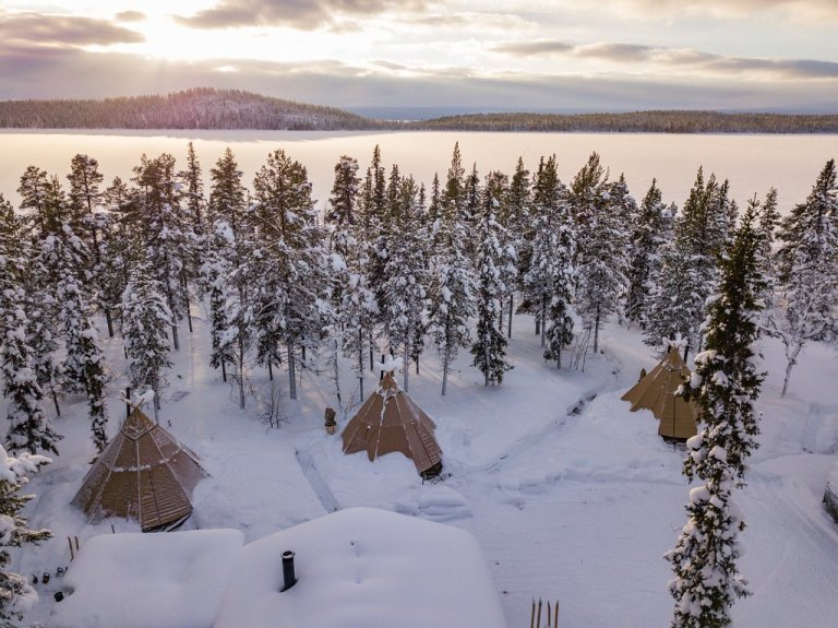 Sápmi Nature Camp, a high-end glamping site, recently opened about 40 minutes from the center of Gällivare. The old homestead was already covered with a boreal forest, grazing land, and a cabin from 1910. They were left largely untouched. There’s no electricity, running water, or WiFi at the camp. Candles light the cabin. A fireplace warms it and cooks the food (marinated grouse and smoked mountain fish are on the menu tonight). Another one heats the sauna. Each of the lavvu tents, which look like tepees, have their own wood-burning stoves, as well. An automatic diesel-fuel heater keeps guests toasty all through the night.