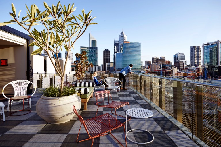 Perth’s coolest hotel is the Alex Hotel. It was created by the guys behind Little Creatures, a microbrewery that brought American-style IPAs to Fremantle, Perth’s port area. It’s near the central train station and the Perth Cultural Centre (galleries, museums, theaters). The modern, angular building is unique and definitely sticks out. Plus the sixth floor has a rooftop terrace with sweeping views of the city.