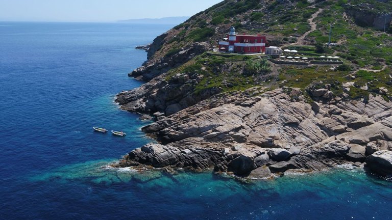 The Italian Navy built the Punta Fenaio lighthouse, as well as the Punta di Capel Rosso lighthouse on the island’s southern tip, in 1883. Families operated the octagonal lighthouse until the 1980s when all of Italy’s lighthouses were automated. For years, the building sat empty. It was recently turned into a unique little resort.