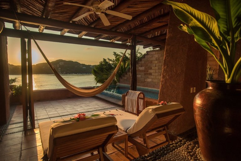 At least the dream of staying at this particular hotel dimmed. You couldn’t get Zihua out of your mind, though. During your last trip, your suite had a huge terrace, an infinity plunge pool, and a view across the bay. You tasted guacamole when you arrived, ate traditional seafood pozole at an open-air restaurant, and sipped spicy margaritas as the sun began to set. You even enjoyed working out, since the gym had a sweeping view of the water. Something finally clicks. You don’t need a new place to return to Zihua. You already know an amazing boutique hotel there.