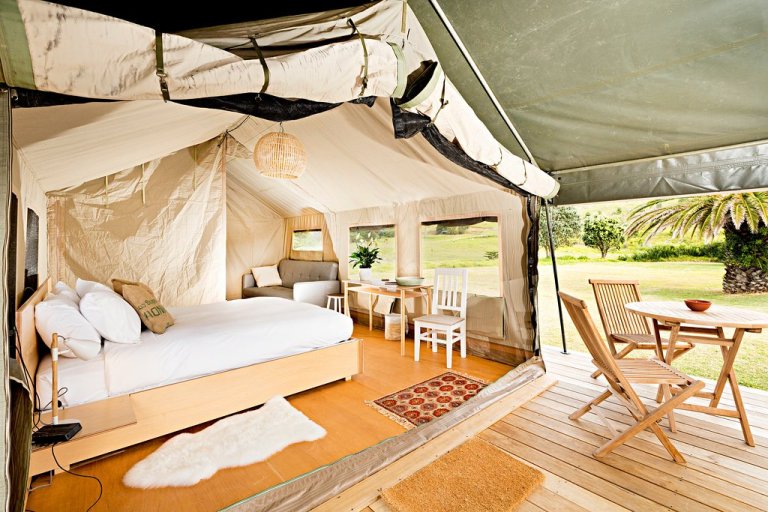 You can’t miss Peppa. She’s a small kunekune pig who likes to walk the beach and wallow in the sand. She’ll watch you chase a soccer ball, build a sandcastle, and poorly cast a fly rod into the clear water. She’ll curl up to cuddle when you’re both ready for a beach nap. Then, when you head back to your tent, she’ll return to the farm. Peppa is one of the best parts of the island. She’ll make sure you don’t feel deserted.