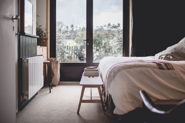 Clark, the house dog, greets you upon your arrival. He likes to hang out near the porcelain stove in the lobby since the open space doubles as the bar. People coming and going to play board games, read in armchairs, and sip glasses of wine mean constant attention for the friendly pup. La Serre (the Greenhouse), the conversatory-turned-restaurant overflowing with green plants, and L’atelier, where breakfast is served and cooking classes are held, are in the main building, as well.