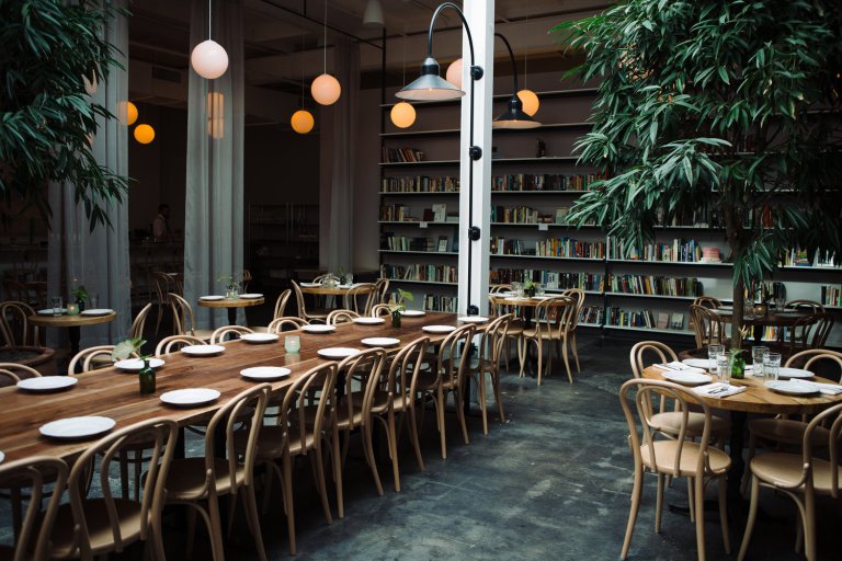 Brewery Bhavana is now a four-in-one destination. The bright, cheerful space features three large fig trees and lots of natural light thanks to a huge skylight. Bite-sized plates are served at small cafe tables and a long communal table. Forty taps line the wall behind the marble bar. Ten of them are reserved for core beers, which range from a Session IPA to a Quad. The rest of the lines swap out regularly. Another wall is filled with beautiful books. They’re paired with the sweet smell of locally grown flowers that’ll quickly be combined into custom arrangements. No wonder Brewery Bhavana started winning awards shortly after it opened.