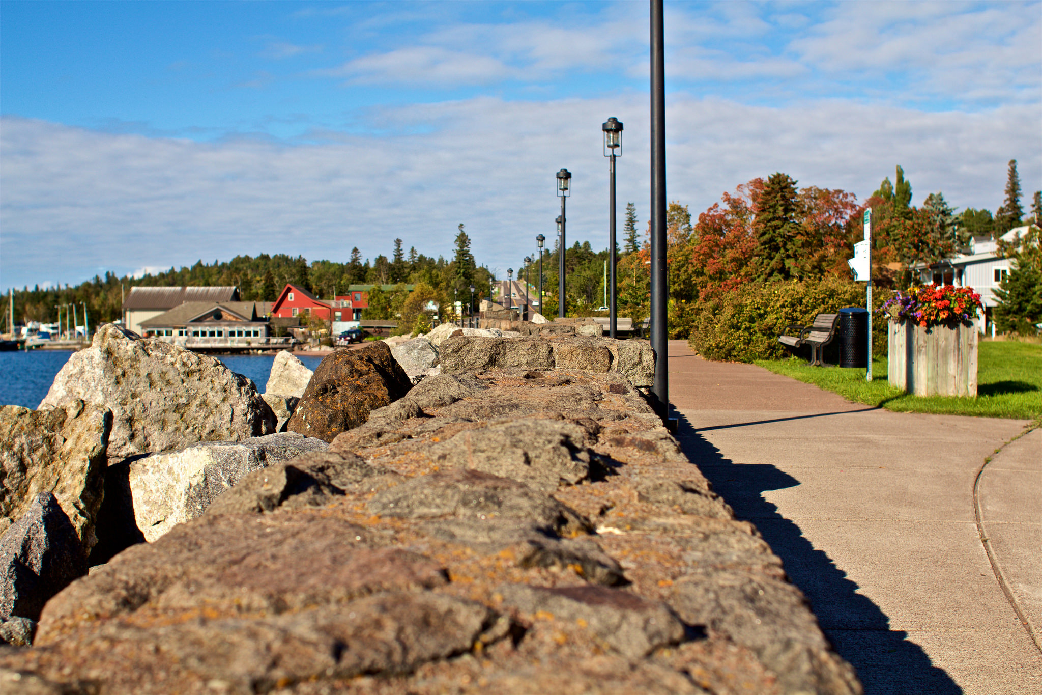 Grand Marais: Go to Minnesota. Stay in the Arrowhead Region. Sleep in a suite with an electric fireplace and a view of the lake. Focus on hiking, art, and food along the shore of Lake Superior.