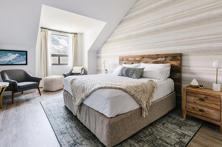 So you planned a night at the Glacier View Lodge. Canada’s only hotel with an uninterrupted view of a glacier reopened last spring after extensive renovations. The chalet-style lodge now feels very Scandinavian with a minimal design and a hygge vibe. The lobby features floor-to-ceiling windows, shaggy rugs, and a gas fireplace. Rooms have plush bedding and Nespresso machines. While the view of that glacier is never far from sight.