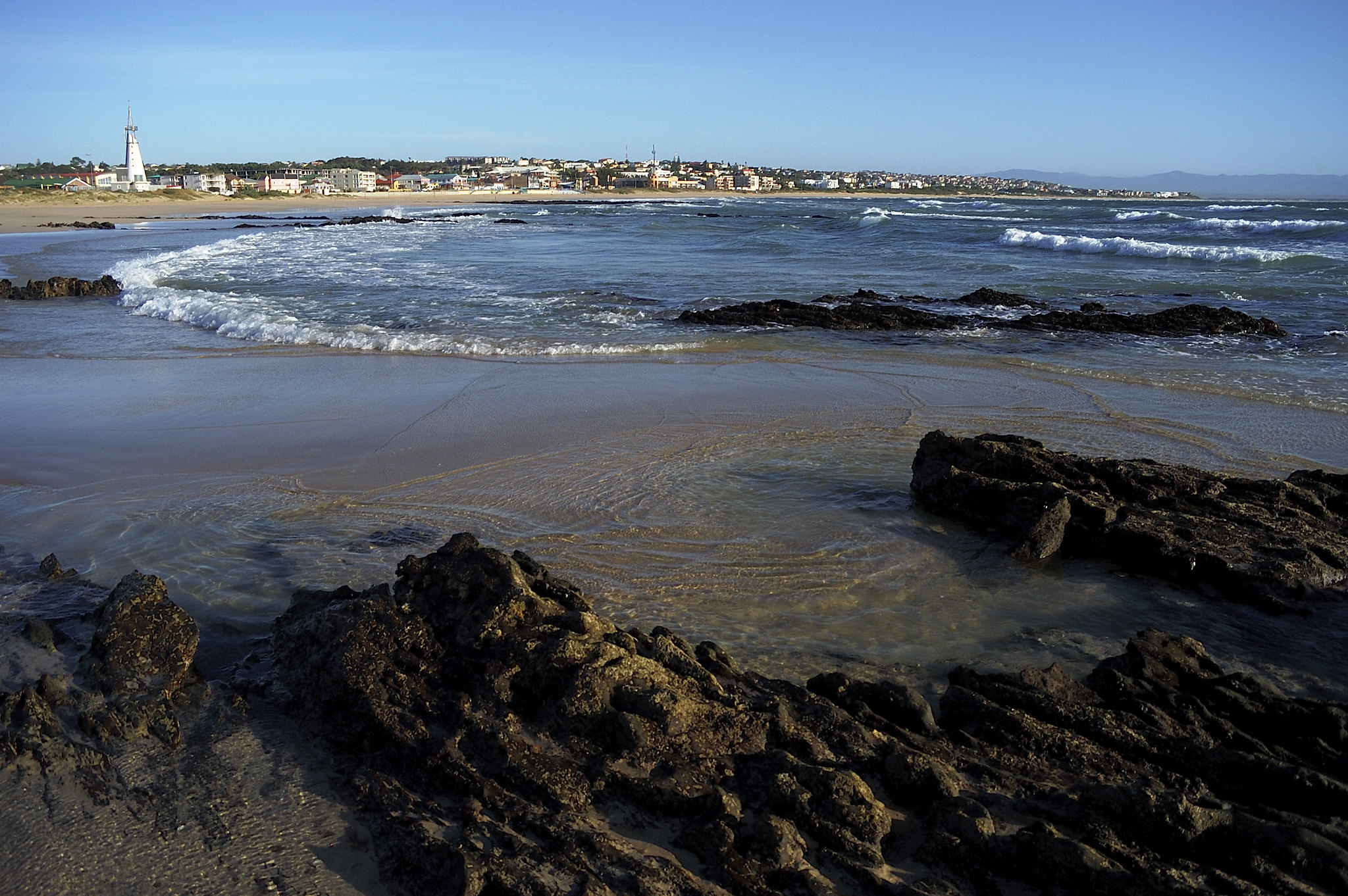 Jeffreys Bay is one of the most famous surfing destinations in the world. It lies along South Africa’s Eastern Cape and Sunshine Coast. Port Elizabeth, a popular beach town, is only 45 miles to the northeast. It overlooks the Indian Ocean, where dolphins and southern right whales live. White-sand beaches, dotted with tons of seashells, and aloe-filled dunes line the coast. Red-tiled and thatched roofs fill the center of town. While the vibe, like most surfing meccas, is laid-back and super-friendly.