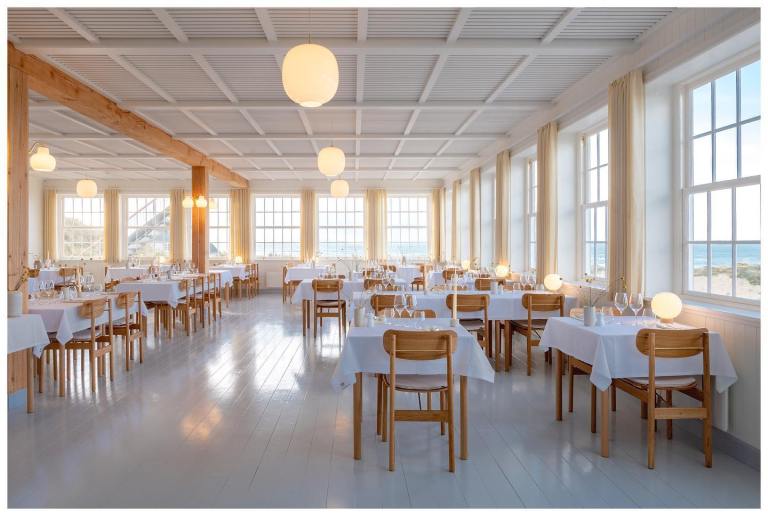 This should have been a big year for Svinkløv Badehotel. In 2016, the hotel was destroyed by a major fire. Kenneth and Louise Toft-Hansen spent nearly three years rebuilding the beloved hotel. They kept the whitewashed wood and the natural color palette. They added a handful of rooms and private bathrooms. They focused on beautifully designed details, including a stair railing and Shaker-inspired coat racks. They enhanced the acclaimed restaurant with larger windows and elegant Vester chairs. Then Kenneth, who helmed kitchens long before he was a hotelier, won the famous chef competition.
