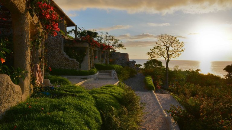 That beachfront resort, Rockwater, is about to come into view out the lefthand side of the airplane. After passing Erromango, Vanuatu’s fourth-largest island, the white coral cliffs on Tanna’s northwest coast start to appear. As the airplane dips to approach tiny Whitegrass Airport, you have a clear view of Rockwater’s coral gardens, bountiful fruit trees, turquoise pool, stone buildings, and alfresco restaurant. It looks more like a Mediterranean villa than a normal resort. Your adult side is already wondering how long your reservation can be extended.