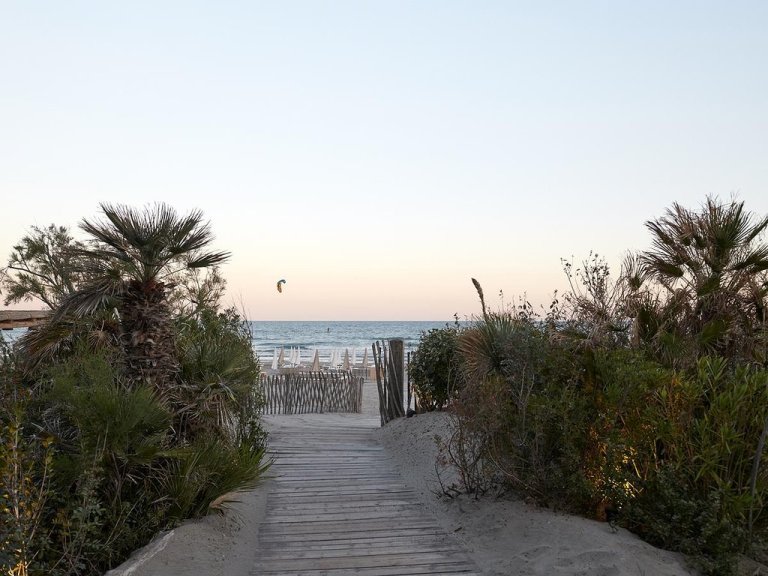 You’re not alone. Two French brothers felt exactly the same way. They used to spend their summers in Palavas-les-Flots, a narrow barrier island. This isn’t the fancy Côte d’Azur outside of Marseille. Instead, it’s an old fishing village, south of Montpellier, that has a more casual, East Coast vibe. The Costes happen to be the owners of chic hotels, restaurants, and cafes across Paris, though. So they could do something about their nostalgia. That’s why they built their own beach resort.